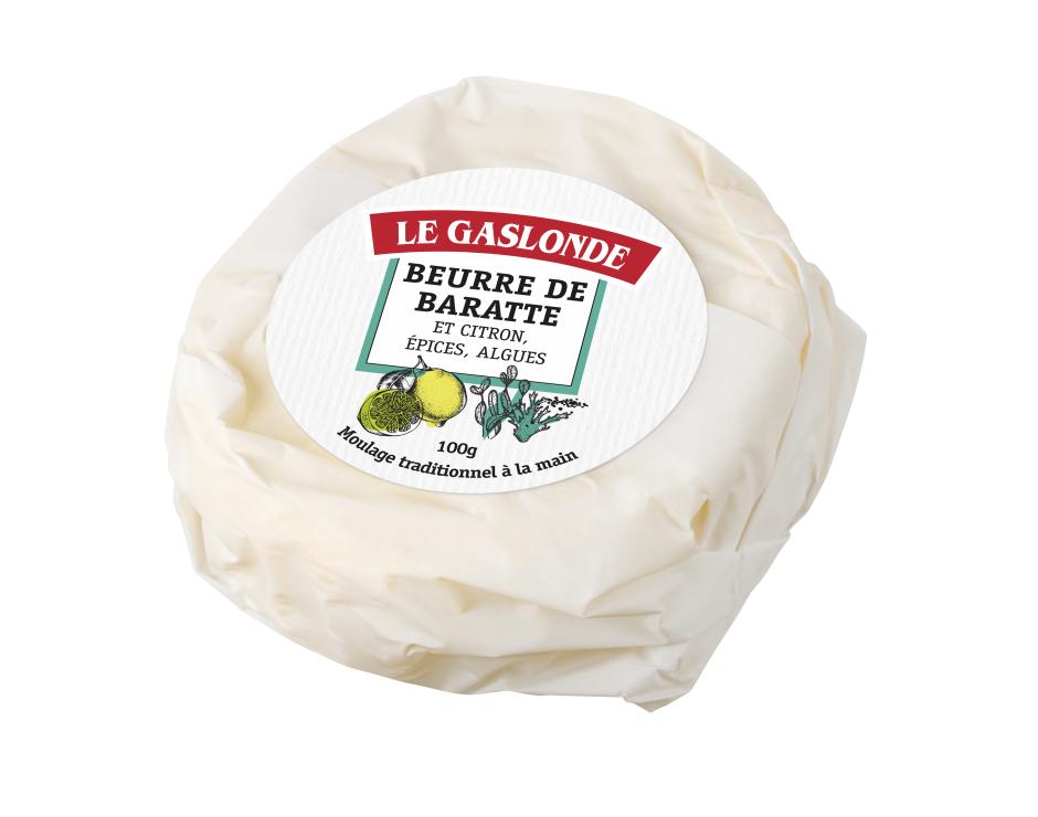 95% BEURRE de baratte (origine : France), 5% de mélange : citron émincé, sucrose, fécule de maïs, épices dont baies de poivre rose, graines de MOUTARDE, algues, thym