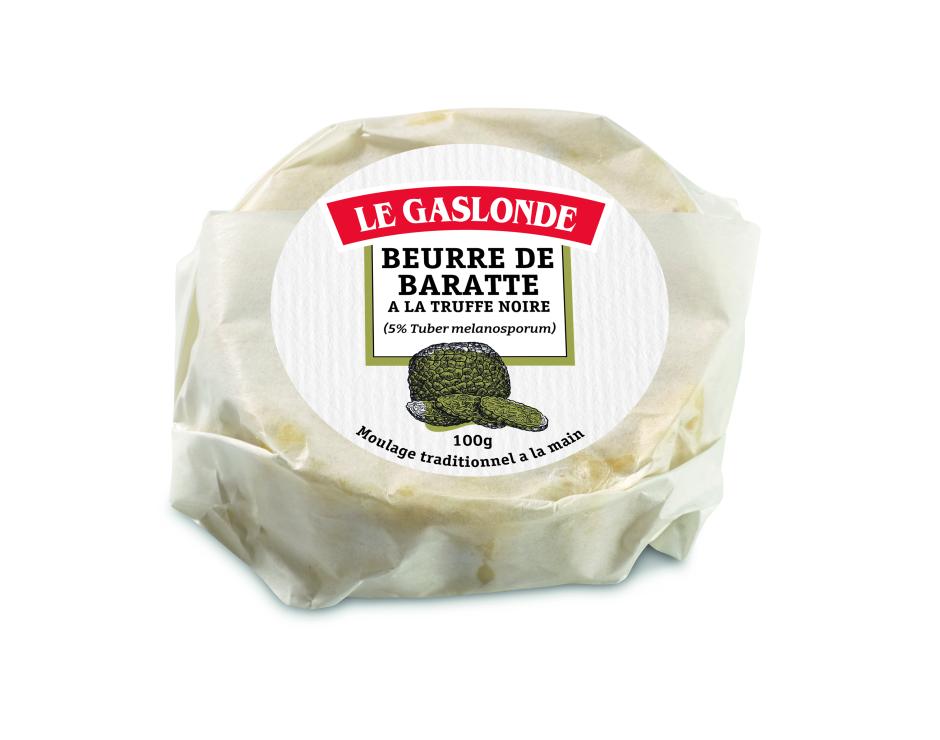 Beurre de baratte pasteurisé (origine: France), brisures de truffe noire (Tuber melanosporum), sel