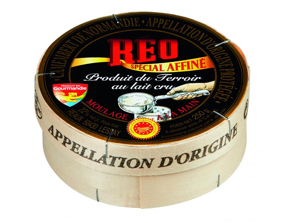Puissance aromatique, texture généreuse, fleur fine, affiné sur mesure de blanc jusqu’à fait à cœur, tels sont les qualificatifs qui symbolisent le camembert AOP Réo. "Spécial affiné"