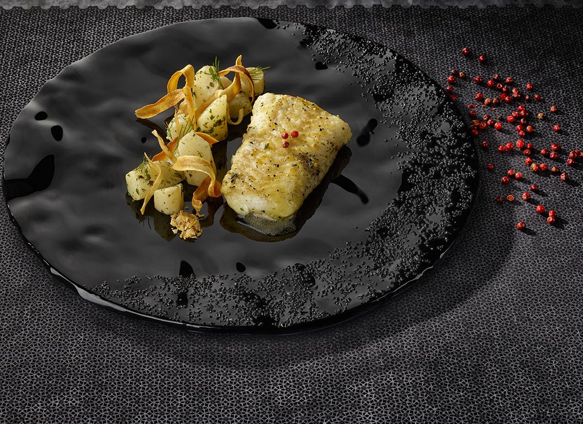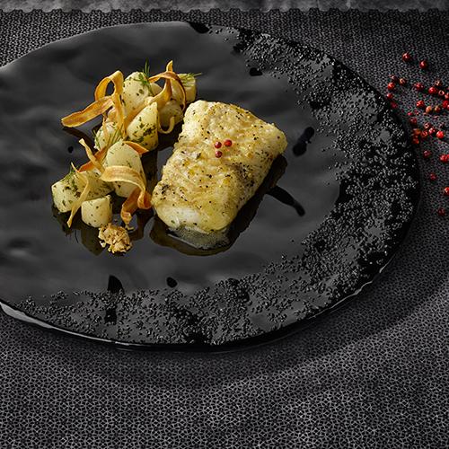 Cabillaud rôti au beurre citron algues, salsifis aux herbes