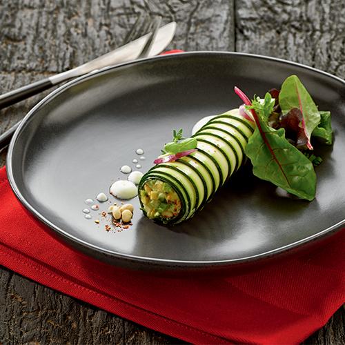 Sur un papier film, disposez les lamelles de courgette à plat.